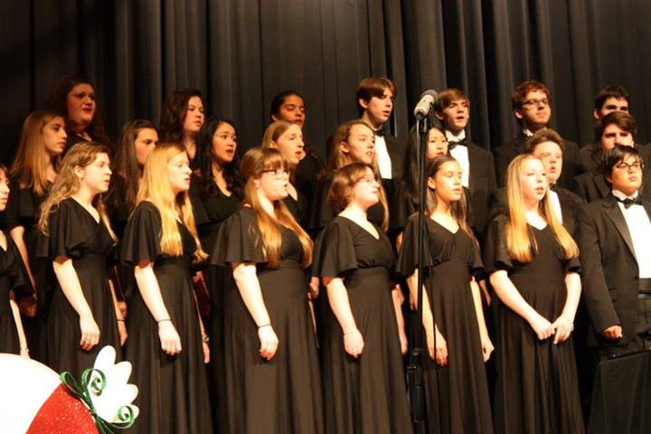 In the photos above, the RMHS Flute Quartet and the RMHS Marching Band perform at the annual Winter Holiday Concert.