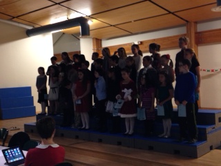 In the photo above. Students in RISE Preschool Teacher Joyce Camenker’s class singing some Holiday tunes just before vacation.